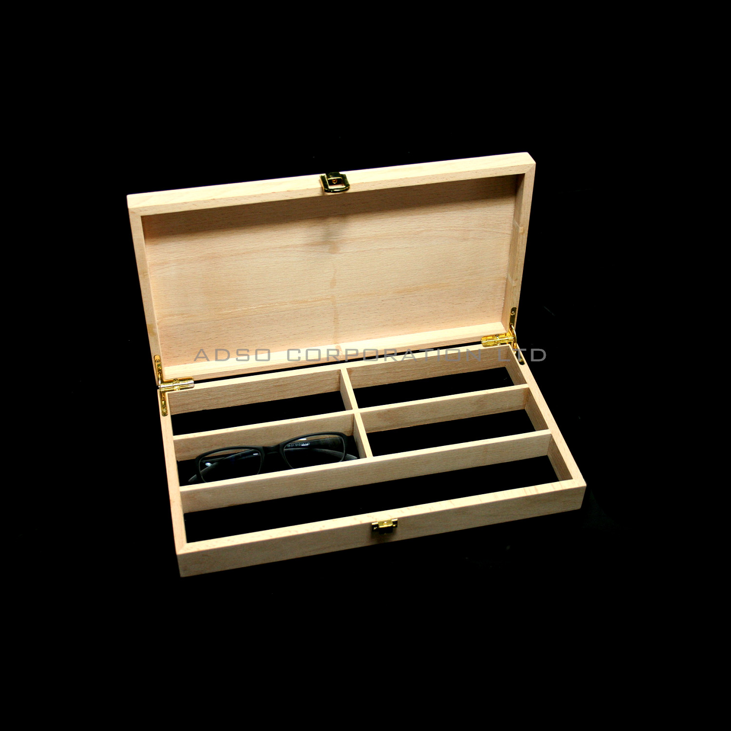 This glasses box features a wooden construction designed with a hinged cover top and a locking clasp. It crafted with multiple partitions to organize your favorite eyeglasses or sunglasses. This wooden glasses box is durably built to provide excellent protection to your eyeglasses from scratches and dust.